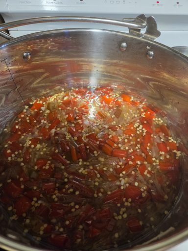 - Add all the ingredients into a large pot, and bring to the boil. Check the heat of the sauce, and add in more of your seeds and pith if you want it hotter. Simmer for around 30 minutes.