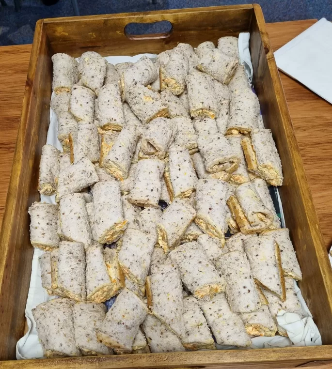 If you want you can use a whole bread loaf cut lengthways, and make pinwheels. (Note Baker’s Delight will slice their bread like this for you)